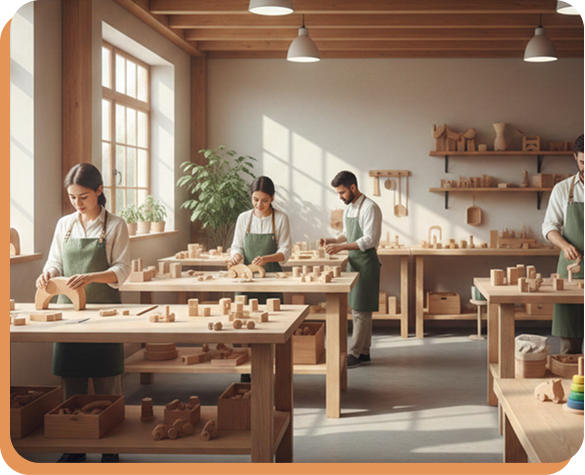 every stage — from wood selection to final finishing. We blend skilled craftsmanship with modern processes to deliver durable, safe, and beautiful toys.